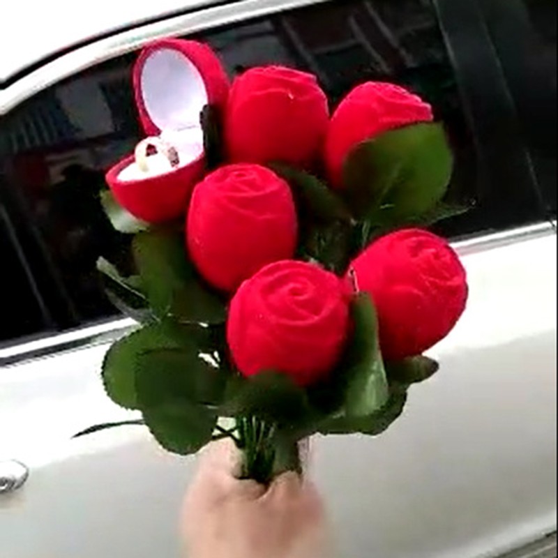 1x Red Rose Flower Velvet Jewelry Box Portbale